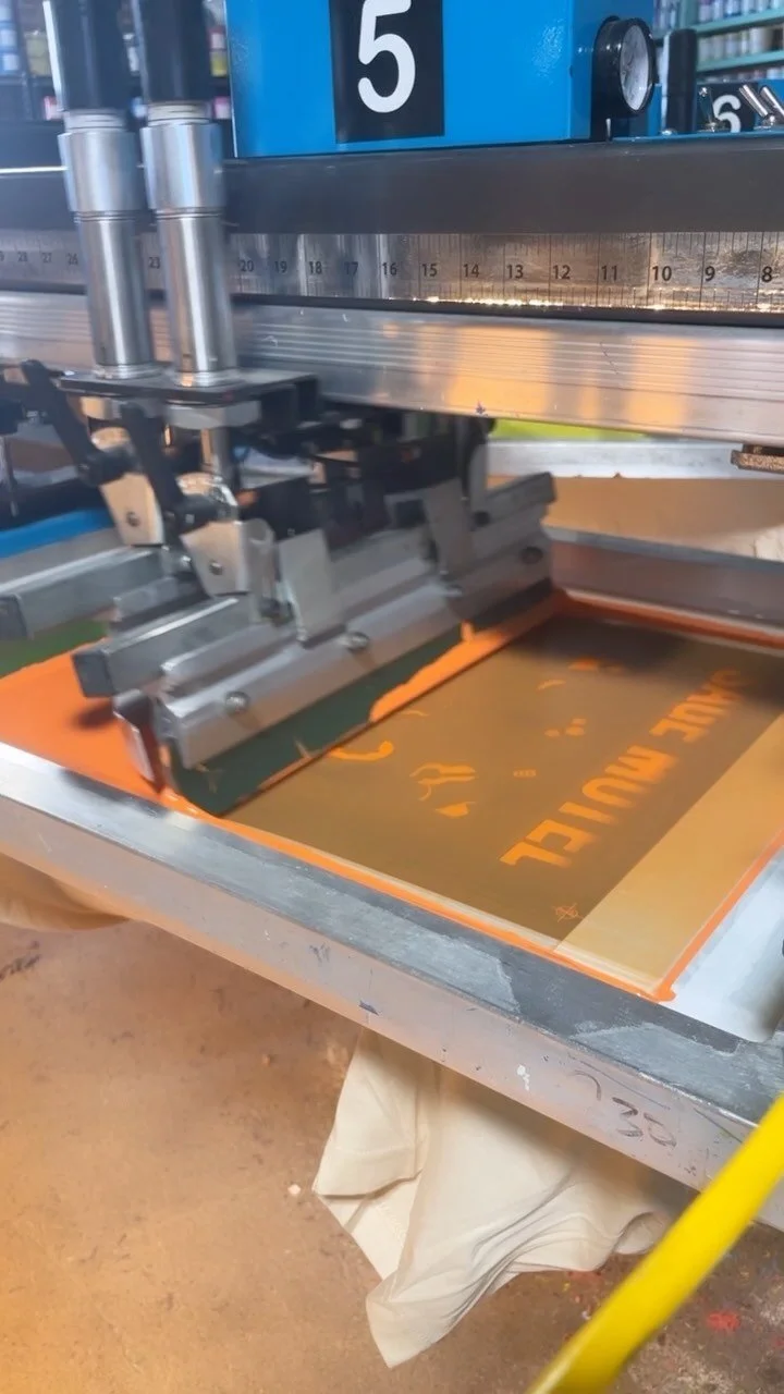 Discharge inks activate the dye in fabric to discharge from the originating fabric. Pros to this process is that discharge is especially effective for distressed prints and under-basing on dark garments that are to be printed with additional layers of plastisol. It adds variety to the design and gives it that natural soft feel.